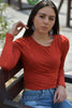 Blusa Ribbed de Flores Cuello Cuadrado Manga larga
